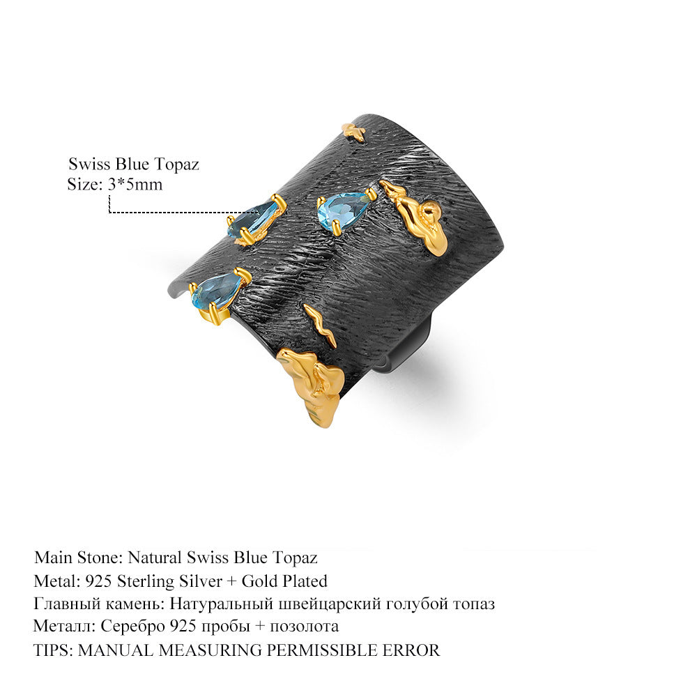 Series Blue Topaz 925 Silver Retro Style Ring